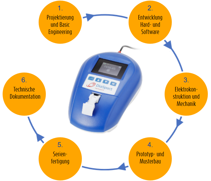 Unser Entwicklungszyklus zeigt, welche Einzelleistungen wir anbieten, um zu erfolgreichen Produkten zu kommen.